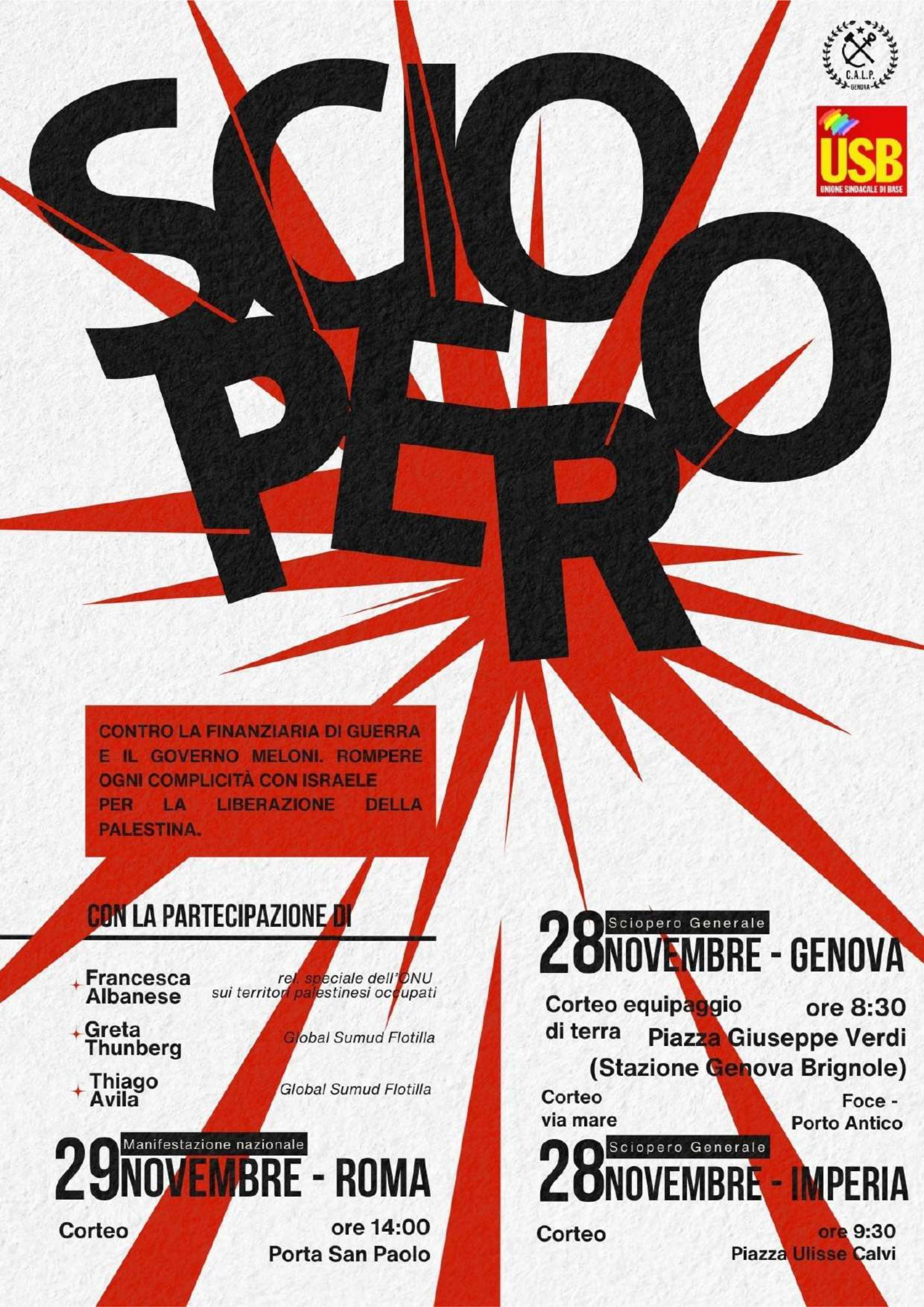 28 NOVEMBRE SCIOPERO GENERALE 📍GENOVA 8.30 Piazza Verdi - stazione di Brignole 📍Imperia 9.30 Piazza Ulisse Calvi