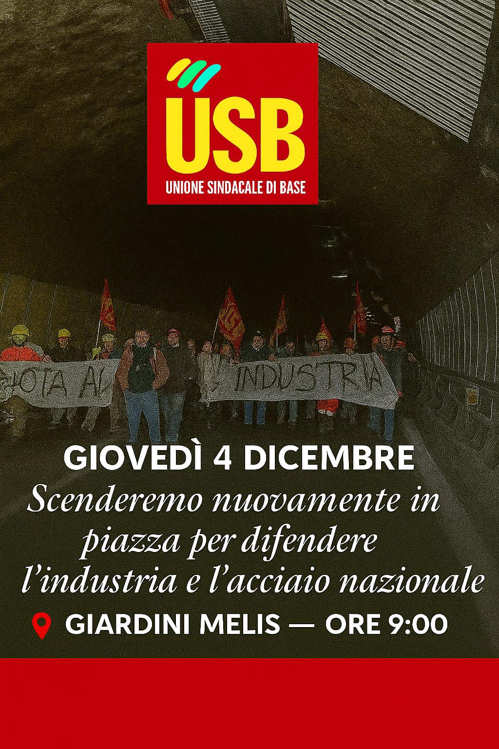 VERTENZA ACCIAIERIE E FUTURO DELL’INDUSTRIA USB ADERISCE ALLO SCIOPERO DEI METALMECCANICI GENOVESI GIOVEDI 4 DICEMBRE